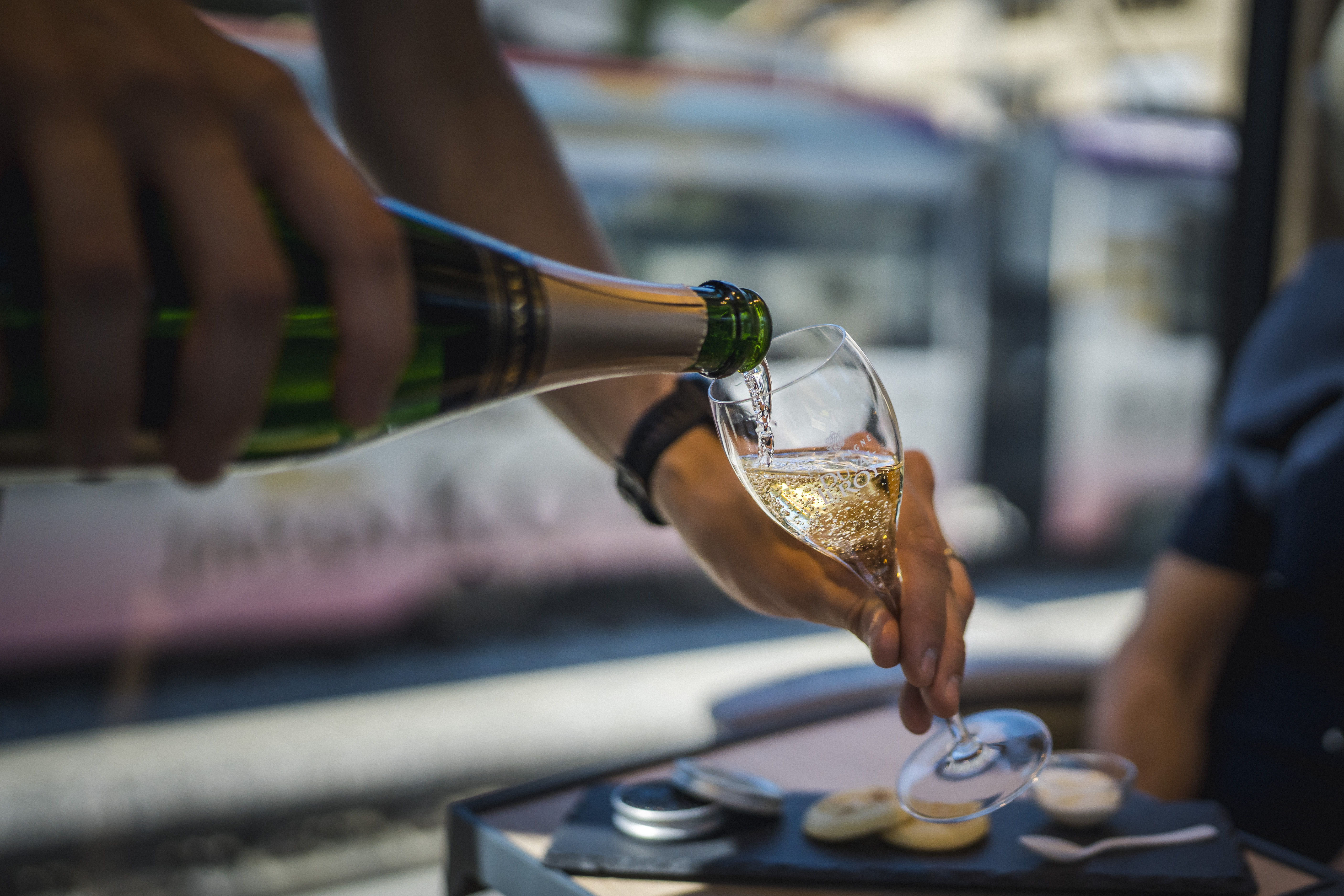 Un choix de boissons et de snacks est disponible à bord. La disponibilité des planchettes, du caviar et des box petits-déjeuners n’est pas garantie sans réservation préalable. Une réservation est vivement conseillée.